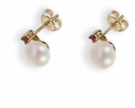 Gold Pearl Earrings with white Freshwater Pearl 12 -12,5 mm, very good Luster, AA quality. Yellow and White Gold 14K, weight 5 g.