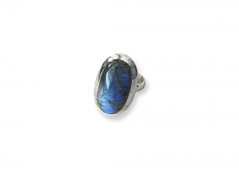 Srebrn prstan Aurora Polaris z osupljivim spektrolitom (labradorit 15 × 25- 17 x 27 mm, AAA kvaliteta) v sebi nosi skrivnost svetlobe polarnega neba. Minimalistična srebrna obroba širine 2,5 mm poudari markantno obliko z modrozelenim odsevom v polnem sijaju. Teža 10,5 -12,8 g.