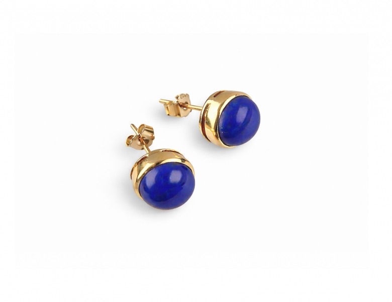 Gold Earrings with deep royal blue Lapis lazuli embody timeless elegance with a refined presence. Smoothly polished AA-grade lapis is set in warm yellow gold, highlighting the stone’s natural depth and noble glow. Lapis AA quality, diameter 11 -12 mm, weight 9.92 Ct. Earrings weight 5.2 g.