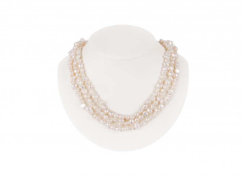 Dolga biserna ogrlica iz sladkovodnih biserov nepravilnih oblik velikosti 6,5-7 mm v beli in nežni roza barvi z dobrim leskom, ki poudari njihovo vihravost. Ogrlica je izjemno vsestranska; lahko jo nosite kot enoredno/dvoredno za klasičen videz ali pa jo prepletete in oblikujete v zanko, kar doda pridih sodobnosti in unikatnosti vašemu stilu. Ne glede na to, kako se odločite, bodo sladkovodni biseri vedno izstopali kot simbol prefinjenosti in brezčasne lepote. Dolžina ogrlice 120 cm.