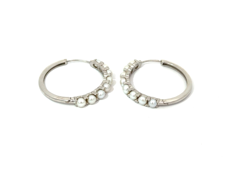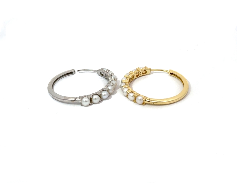 Elegantni srebrni ali pozlačeni biserni uhani - rinka premera 28 mm z nizom snežno belih biserov 4 mm, AA kvaliteta (2 x 8 biserov), ki s svojim leskom nežno poudarijo sodoben, a brezčasen videz. Modna elaganca v prestižnem razredu.
