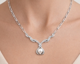 Srebrna ogrlica VALERIE z biserom in cirkoni