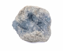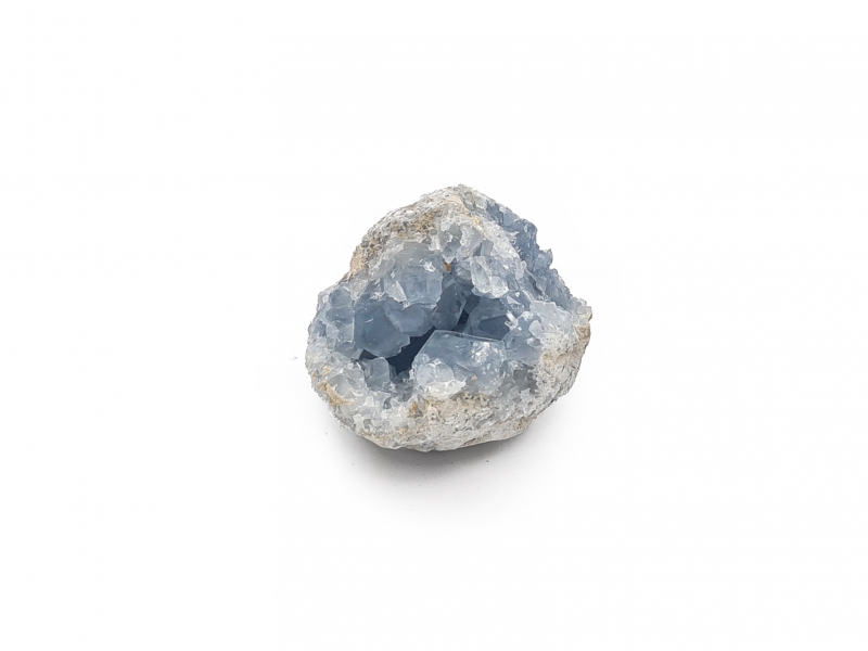 Natural Celestine crystal druzes in AA quality with intensive sky-blue hue and transparency. Mined in Madagascar, this crystal symbolizes peace, clarity, and higher connection. Available in sizes: 1) 70 x 85 x 55 mm, weight 600 g;