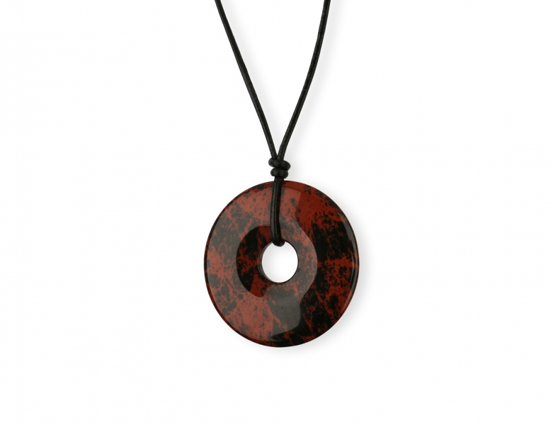 Obesek japis krog-donut premera 50 mm na usnjenem ali bombažnem traku prilagodljive dolžine (40 - 80 cm). Možna tudi izbira samo obeska.