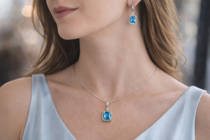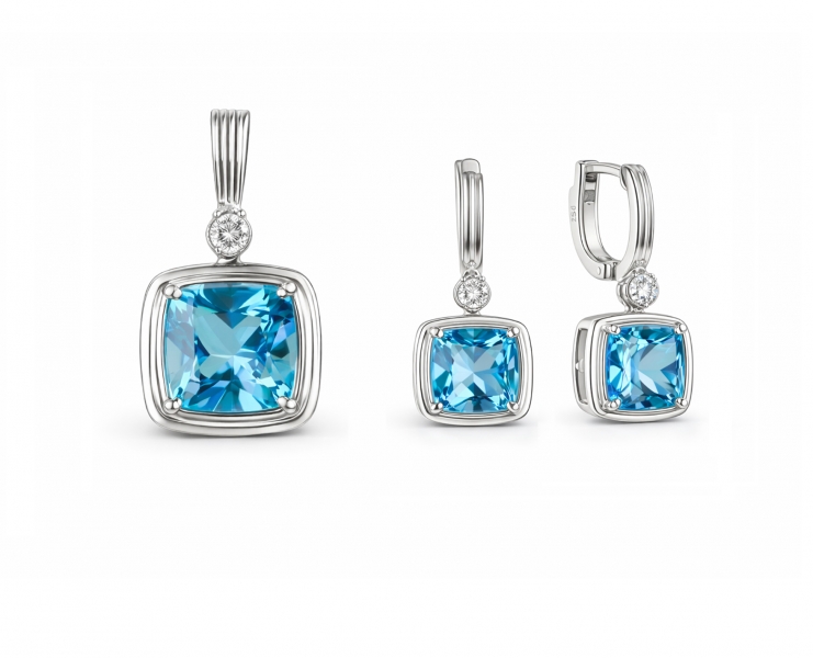 Zlat komplet NEA - obesek in uhani modri topaz z diamanti Zlat komplet NEA - obesek in uhani modri topaz z diamanti