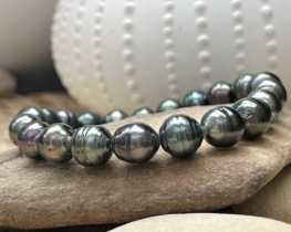 Srebrna zapestnica s tihomorskimi biseri v beli, črni (Tahiti) in zlatorumeni barvi, velikost 9 - 10 mm, dober lesk. Dolžina zapestnice je prilagodljiva od 16 - 24 cm s poteznim vodilom, prav tako lahko prilagajate razmak med biseri. Pletenje zapestnice Coreana, premer 1,8 mm, srebro 925, teža 7 g.