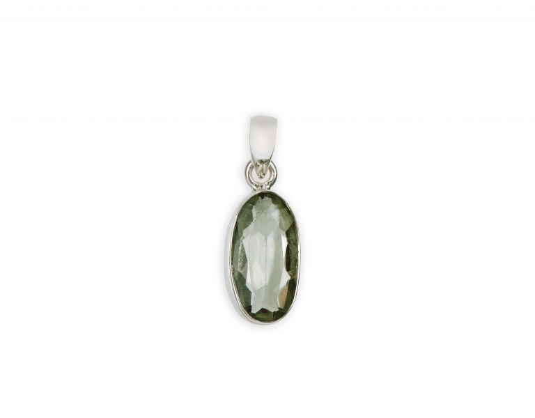 Obesek zeleni ametist navdihuje s prosojnostjo in pomirjujočo energijo. Fasetno brušen Prasiolit (11 × 20 mm, 4,2 g) v srebrnem objemu sije v barvi svežine in nežnosti. Uteleša ravnovesje in naravno eleganco – za vsak trenutek svetlobe v dnevu.