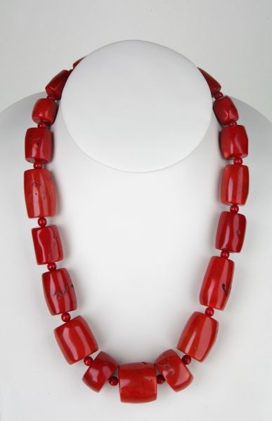 Ogrlica iz ovalnih bamboo koral velikosti 12- 30 mm s srebrno zaponko karabin 8 x 13 mm, dolžina 50 cm.