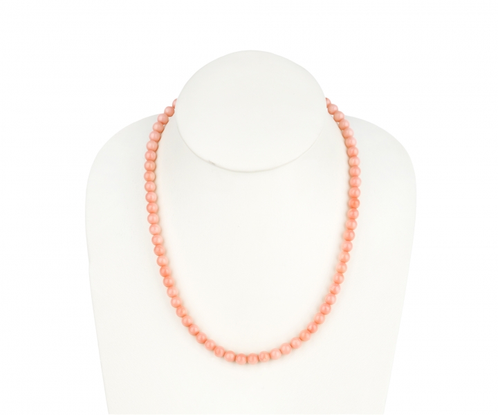 Ogrlica iz roza koral premera 8 mm s srebrno zaponko karabin 8 x 13 mm. Dolžina 42 in 50 cm.