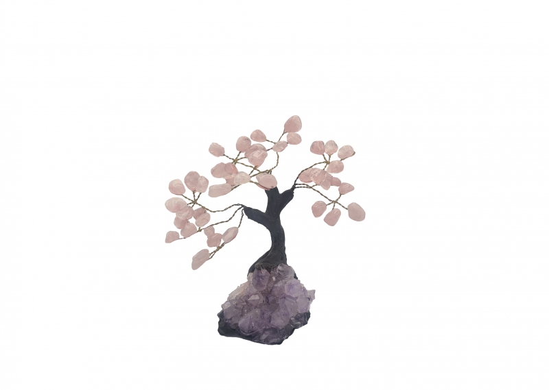 Okrasno drevo s kristali roževca ali ametista prinaša nežno energijo ljubezni, ravnovesja in notranjega miru. Drevo je izdelano iz 45 kristalov velikosti 10 × 12 mm, skrbno oblikovanih v elegantno krošnjo, ki stoji na podstavku iz naravnega ametista (70 × 40 mm). Kombinacija obeh kamnov – ametista in roževca – simbolizira harmonijo med srcem in umom.
