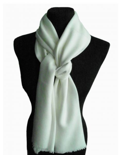 Enobarven (uniseks) šal PURE CASHMERE iz prave kašmirske volne (100 % cashmere). Velikost 80 x 200 cm, bela barva. Oglejte si 10 načinov, kako nositi šal.