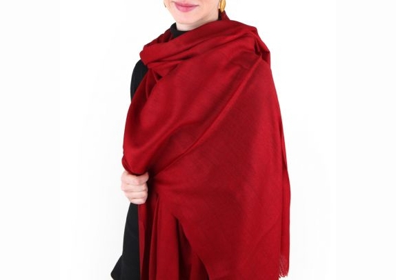 Modni enobarvni šal iz prave kašmirske volne (100% cashmere). Velikost 80 x 200 cm, rdeča barva. Šal je tkan v Kašmirju, Indija. Oglejte si 12 načinov kako nositi šal! Dobavni rok 25.11.2025