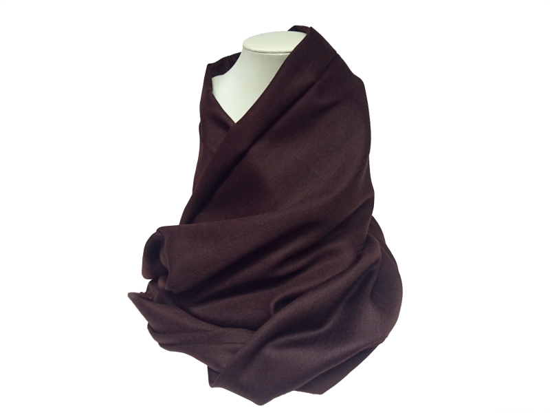 Enobarvni šal PURE CASHMERE iz prave kašmirske volne (100% Cashmere) v čokoladni temno rjavi barvi. Velikost 80 x 200 cm. Oglejte si 10 načinov kako nositi šal!