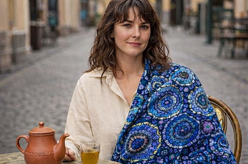 Volneni šal Mandala Jamawar iz 100 % kuhane kašmirske volne objame s toplino in ritmom vezenih mandal. Bogata tekstura, umirjena eleganca in ročna izdelava iz Kašmirja ustvarjajo brezčasen kos za hladne dni. Velikost 70 × 190 cm, 280 g, na izbiro temno modra in črna.
