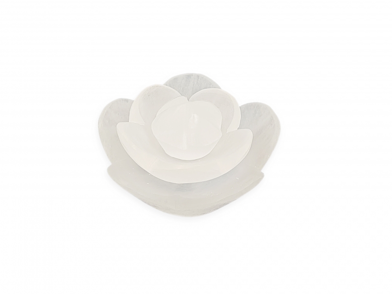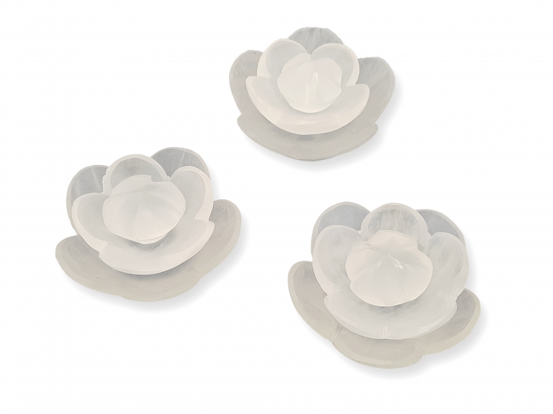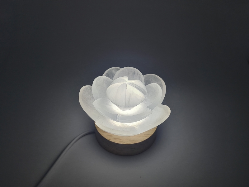 Selenite Lotus Flower 45 x 85 mm – a symbol of spiritual renewal and serenity, delicately carved from pure white selenite, especially enchanting with a LED wooden base.