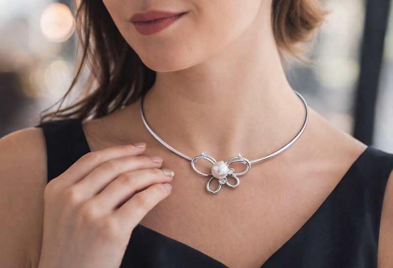 Silver Pearl Necklace Madame Butterfly