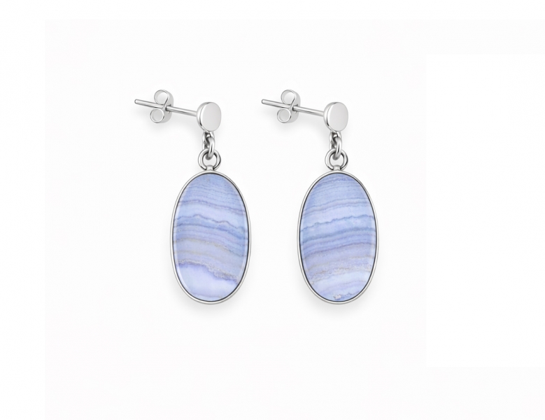 Silver Earrings with Blue Chalcedony create a soothing harmony of blue shades reminiscent of soft watercolor motifs. Handmade earrings bring a touch of elegance and natural beauty. Size available: 13 × 23 mm (9.2 g).