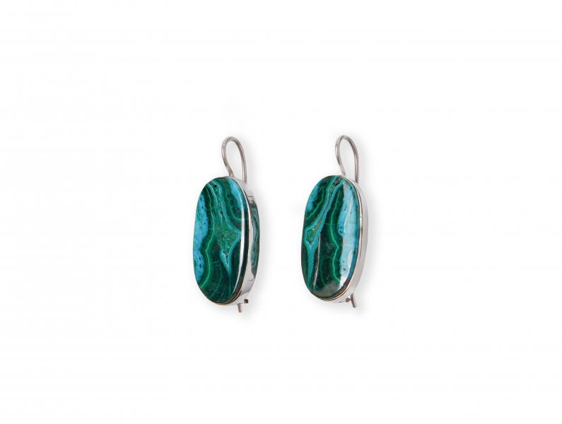 Silver Earrings Malachite-Chrysocolla Aquarelle