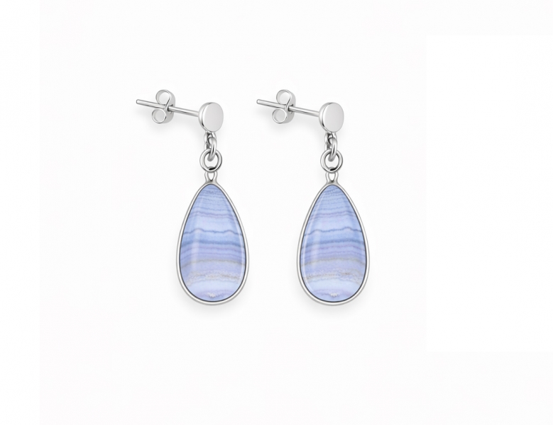 Silver Earrings Blue Chalcedony captivate with their translucent blue, reminiscent of the morning sky above the ocean. Handcrafted earrings with butterfly closure, Teardrop size 10 × 24 mm (7,6 g).