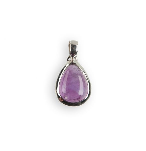 Srebrn obesek Lili Ametist v obliki solze očara s svojo naravno lepoto in nežno vijolično globino. Ametist v srebrni obrobi izraža harmonijo in notranji mir, ljubezen in ravnovesja duha. Na izbiro dve velikosti: A – 15 × 20 mm (4,6 g); B – 17 × 24 mm (5,7 g).