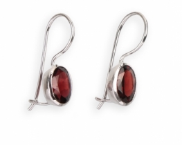 Srebrni uhani z naravnimi fasetno brušenimi kamni premera 6 mm. Na izbiro sedem vrst kamnov: Ametist, Granat, Modri topaz, Citrin, Zeleni ametist in Karneol. Teža uhanov 1,1 g.