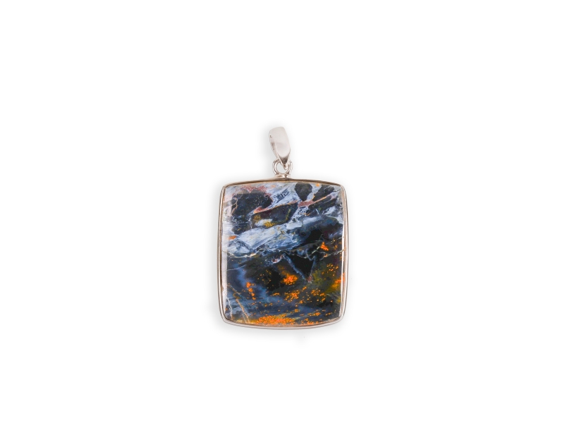Srebrn obesek petarsit očara z globokimi vijolično sivimi toni in svetlobnimi odsevi. Njegova struktura deluje skoraj slikarsko, naravni vzorci, ki ustvarjajo občutek gibanja in skrivnostne elegance. Velikost 31 × 35 mm, teža 9 g Minimalističen dizajn poudari moč kamna in ustvari izrazit, prefinjen kos nakita.