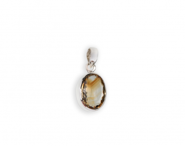 Srebrn obesek citrin s fasetnim brušenjem očara s toplim sijajem rumene barve in ustvarja občutek topline in optimizma. Velikost 17 x 13 mm, AA kvaliteta, teža 5 g.