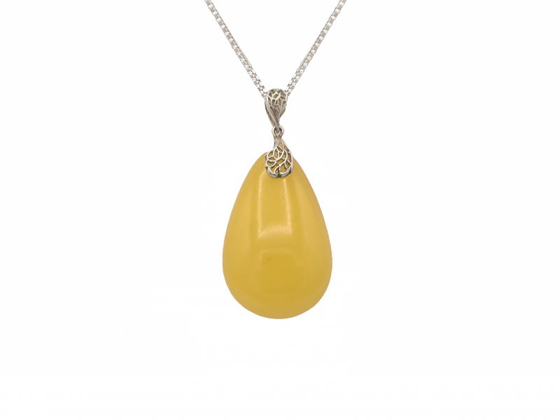 Srebrn obesek s prvovrstnim medenim jantarjem - solza 24 x 36 mm, AA kvaliteta. Obesek ima srebrno obešalo z ornamentom, Vintage design. Teža 8,4 g