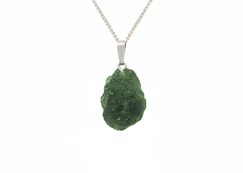 Srebrn obesek moldavit Moravian 14 × 21 × 10 mm, teža 2,9 g, A kvaliteta. Moldavit je kozmični mineral – zeleni tektit, ki je nastal po trku meteorita. Kristal ovalne oblike in izrazite smargdno zelene barve nosi energijo sprememb in prebujenja. Ob naročilu prejmete obesek na sliki s certifikatom o poreklu.