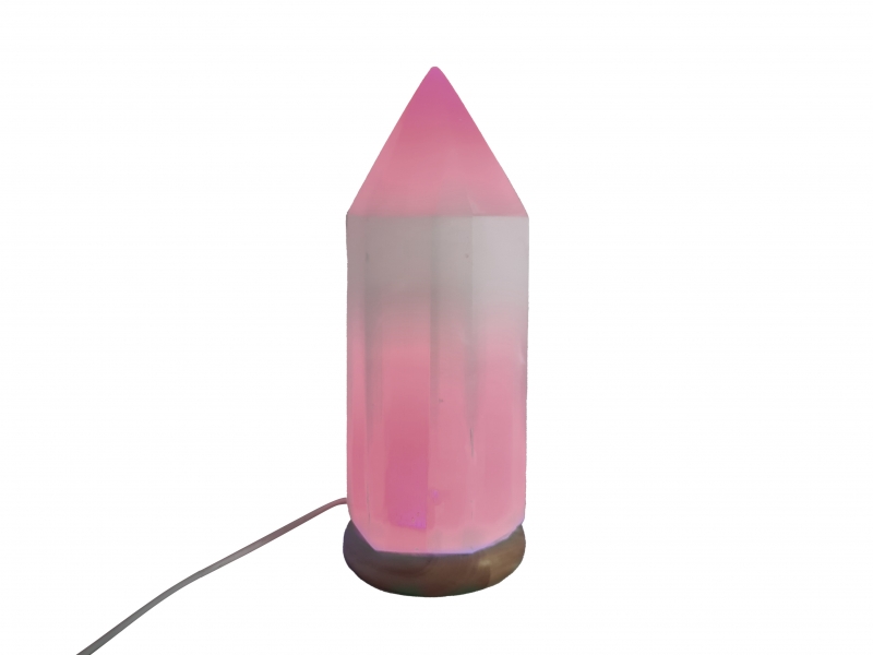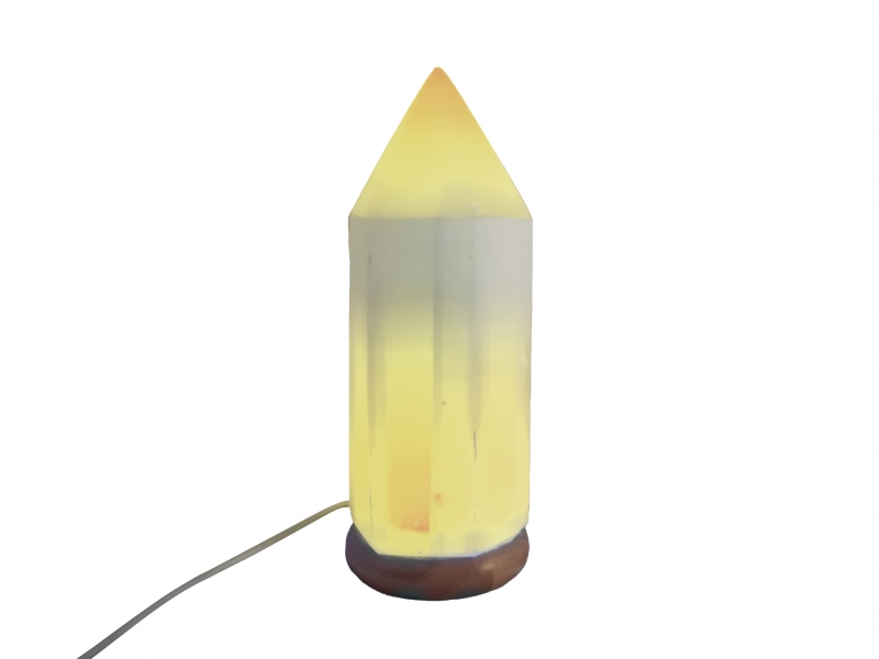 Svetilka Led v snežno belem mineralu selenit oddaja nežno barvno svetlobo in ustvarja sproščujoče vzdušje. Velikost (v) 28 x 10 cm (premer), teža 2,9 kg. Električni vodnik s stikalom in led svetilo sta v kompletu. Samo za notranjo uporabo, ni igrača.