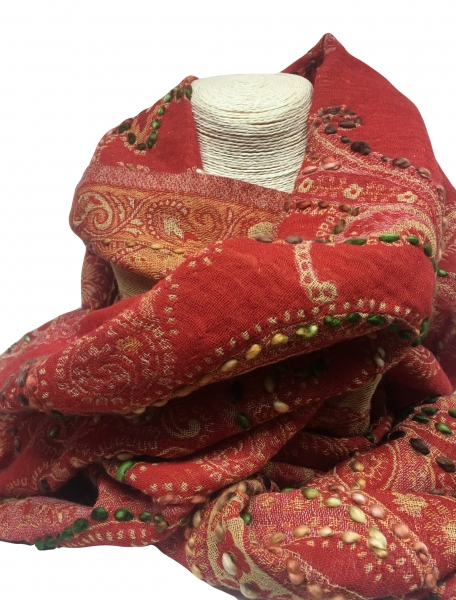 Volneni šal Jamawar rdeč